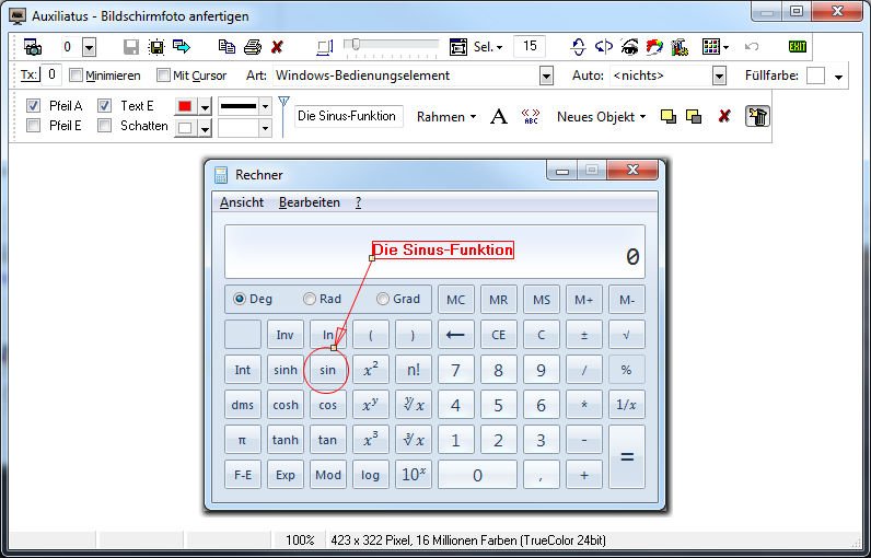 Beim Kopieren, Drucken und Speichern werden die Objekte dann "fest" mit dem Bildschirmfoto verbunden.