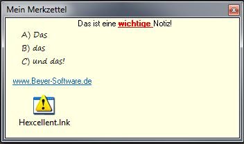 - Links zu Dateien oder Programmen durch Ziehen der Icons auf das Notzizfenster ()mit gedrückter Taste Strg als Kopien bzw. Links, Öffnen bzw. Start dann durch Doppelklick).
