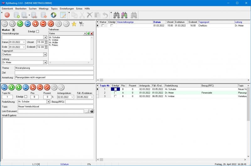 Das Programm ByMeeting dient dem einfachen Verwalten Meetings, Tagungen und Besprechungen.