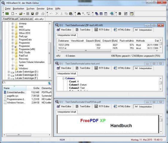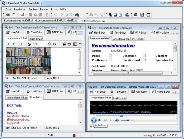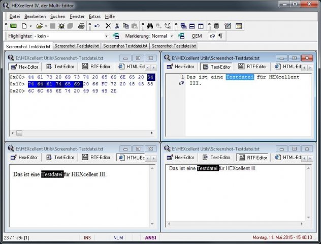 - Markierung und Cursorposition werden nach dem Umschalten zwischen Hex-, Text- und RTF-Editor möglichst beibehalten