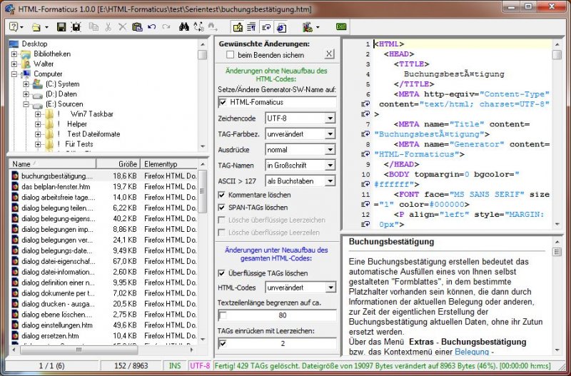 Dabei verfügt HTMLFormaticus über folgende Eigenschaften: