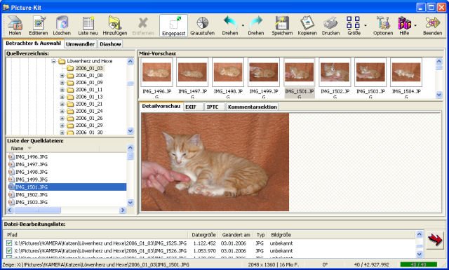 - Direkte Datei- und Ordnerbearbeitung in Picture-Kit, ohne Wechsel zum Explorer (Löschen, Umbenennen, neu Order, Drag&Drop etc.)