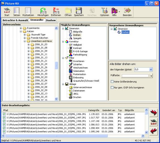 - Ansicht der umgewandelten Dateien (aber auch von allen möglichen anderen Bildquellen!) als Diashow